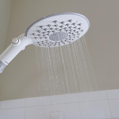 [This review was collected as part of a promotion.] Except for the color, this is a wonderful shower head. I really don’t like the white color. I love the ability to unclog the nozzles by squeezing the rubber. The rain fall shower feature is wonderful & the adjustable hose makes it easy to aim the shower head.