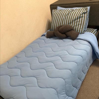 Refresh your child’s bedroom with this Wave Comforter Set from Pillowfort™. Made from a recycled polyester-cotton blend with 100% recycled polyester backing and soft polyester filling, this comforter and sham set provides year-round cozy warmth. The solid shade with a wavy stitched pattern lends an ornate look that effortlessly blends with their existing decor, and the machine-washable construction allows for easy care.