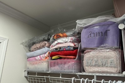 Love these bins for my closet shelves. They help to keep things organized and from falling over.