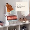 I recently took my sweatshirts off of the hangers in the closet in order to have more space and I decided on this option for storing them on my top rack/shelf. These containers allow me to still see which sweatshirt I want to wear and easily pull it out of the stack since it has a low cut out in the front. I realize these do stack, but I have not tried that feature yet. I chose the translucent option to allow me to see all the way to the bottom of the container.