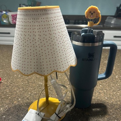 Perfect little lamp for toddler bedroom! Bulb fits perfectly, just a normal pointed candelabra one. Check dimensions before buying. It’s a short one. 30 oz Stanley for reference