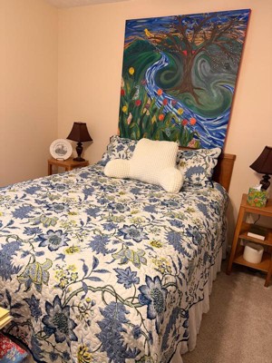[This review was collected as part of a promotion.] 👍🏼👍🏼This quilt goes so well with this painting, in the background, I t’s as if it was perfectly made just for this room. The quality in the stitching is definitely well made and seems to be quite durable. I washed/dried it with no fading and dried completely in one cycle.