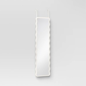 Elevate the aesthetics of your space with this Wavy Over-The-Door Mirror from Room Essentials™. This rectangular mirror features a wavy frame in a white hue for a playful look. Plus, it is designed in an over-the-door mount style, making installation quick and easy. Perfect for bedrooms, bathrooms and more, this wavy mirror makes your space more functional.