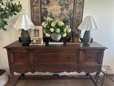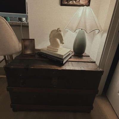 As someone who loves vintage lamps and would never normally spend the money on a fancy new lamp, I am so glad I actually talked myself into purchasing this lamp. Since it went on the shelves, it had been catching my eye every time I walked past! The lamp shade plus the green is SO PRETTY! I finally found a perfect place for it in my home, and I could not be more thrilled about how it looks and how well it works!