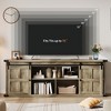 Say goodbye to messy cords and scattered media devices. Our TV stand comes with spacious storage cabinets behind the sliding barn doors, perfect for stowing away DVDs, game consoles, and other entertainment essentials. Each of the two - side storage racks features adjustable shelves with three height for settings. Effortlessly customize the shelving to fit your needs: position bulky game consoles on the lowest tier, neatly stack tall DVD cases on the middle level, or create open spaces on the highest setting to showcase decorative vases or framed photos. Additionally, there are open shelves in the center, offering convenient space for cable boxes, streaming devices, or decorative items like photo frames and potted plants. With this stand, you can keep your living area organized and tidy, enhancing the overall ambiance of the room.