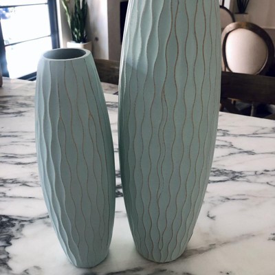 Large Decorative Textured Wood Vase Pale Blue - Stonebriar Collection: 15.7" Coastal Style, Cylinder Shape, Tabletop Display