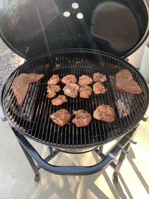 This Is a game changer when it comes to cooking on kettle grills. I used to have to fire up two or three of my 22” kettles when I wanted to cook multiple meats at once. Now I only have to fire this one up. I’ve done 2 tri tips at once with 20 pieces of chicken thighs and then added zucchini and mushrooms at the end in a skillet pan. Everything fit perfectly.