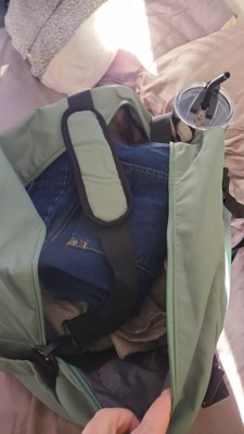 The color is so cute, and it is such a sturdy duffle bag. It is the perfect size for your short weekend getaway trips. It may look small, but it can fit a lot of things. It is also very light weight