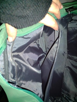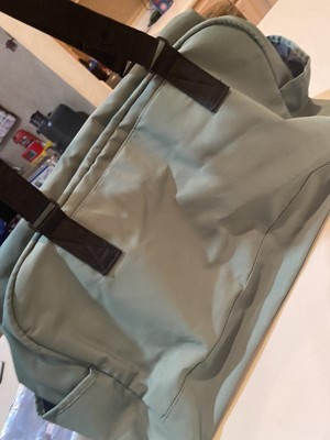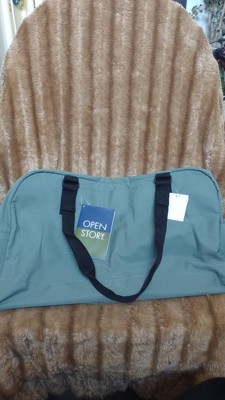 Open Story weekender bag in dark ivy is a well constructed, truly beautiful bag. It has so many pockets and even a padded laptop area. There's a wide slip through area if you use it and want to put a suitcase handle through for easier transportation of your luggage. Nicely constructed and durable, yet pretty!