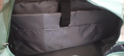 Very good size weekend bag. Very durable with adjustable strap & luggage trolly sleeve. Just slide on your luggage handle & go. Thick padding within so your laptop is secured firmly. 2 large side pockets on each side & small pocket with snap button. I just love the green ivy color of this bag.