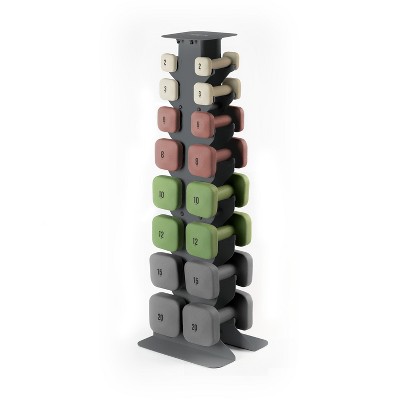 This dumbbell set and rack is not only gorgeous , but comfortable , easy to use, and so well made ! The organization and beauty of these weights and rack is an elevated addition to our home gym !