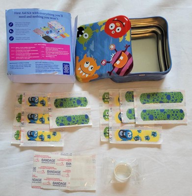 I bought this in the store. It was sealed. When I brought it home and opened it, it only had 21 items in it, not the 70 items listed on the package. I was looking for something small, so I like the size. I like the durable tin. It's just frustrating that I paid full price for something that is missing so much product. If I had more time I'd exchange it, but I bought this for my daughter to take on a camping trip and I don't have time to exchange it beforehand.