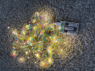 My daughter, age 15, loved these beautiful string lights. The prism acrylic chain is multi color string lights with an attached battery case. There’s a mix rainbow color scheme and it can be placed and moved around in many settings. My daughter likes having her bookcase be the primary focus and these lights add a warm fun color pattern around her books. Highly recommend for teens and anyone who enjoys crafts and decor.