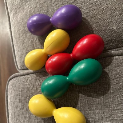 Westco Educational Products Double Egg Shakers, Set of 5 | These shakers are ideal for use in the classroom or at home. Their vibrant colors and size make it perfect for small eyes and hands. Made of plastic so it can be easily sanitized, this double egg shaker is 6" long and passes all safety standards for 18 months and up. Shake away with this original instrument!