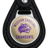 - QUALITY MATERIAL: Our durable round keychain is crafted from leather with a glossy resin-topped emblem featured design shown on one side. Approximately 1.5" (3.8cm) x 2.5" (6.4cm) in overall size, emblem is 1" (2.5cm)..