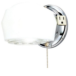 This simple Westinghouse One-Light Interior Wall Fixture was designed for function and practicality. It features a convenient ground outlet and pull chain when most others do not. The fixture also boasts a compact, low-profile design--it will fit easily in even your smallest rooms. The chrome finish base has a versatile aesthetic, and the white and crystal glass filters even light.