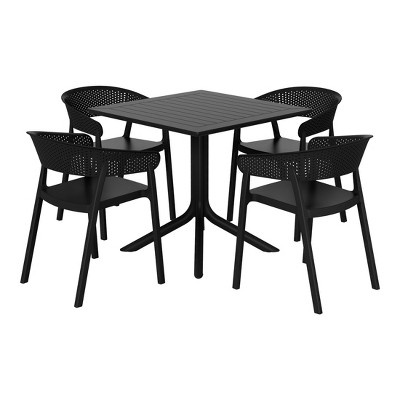 - Set Includes: Four (4) Plastic Resin Dining Side Chairs and One (1) 31.5" Wide Square Patio Dining Table