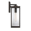 The clean lines and hand-riveted accents make the Westover outdoor lantern collection a modern industrialist's dream. A long rectangular framework provides an unobstructed view of the lantern's sleek interior. The choice of earth black, antique brass, industrial bronze, stainless steel, or western bronze further enhances the versatility of this refined collection. The earth black, stainless steel, and western bronze finishes show off clear beveled glass panels while the antique brass and industrial bronze options flaunt seedy glass. Use the Westover wall lantern in pairs to flank a door or on its own for an asymmetrical look.
