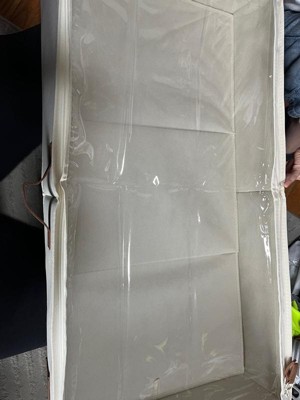 [This review was collected as part of a promotion.] These are SPACIOUS! They can fit blankets, towels, sheets… you name it! They fit nicely under a bed or in a linen closet. They have handles on the front and sides that allows easy access no matter where it is stored! The material is thin but not too thin and offers protection for whatever you put inside. The one downfall is the light color because it can easy show dust if stored under a bed, but it is easy material to clean.