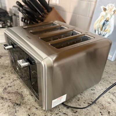 - This 4-slice stainless steel toaster features extra-wide 1.5-inch slots to accommodate thicker slices of bread.