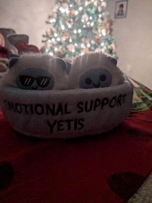 [This review was collected as part of a promotion.] 🧸✨ My Experience with the Emotional Support Yetis When I received these little yetis, the first thing I noticed was how soft and fluffy they are. Each one has its own personality: one with super cool sunglasses and another with a sweet face that exudes pure tranquility. Just seeing them together in their little basket lifts my spirits. I keep them on the sofa or near my desk, and they've truly become a little reminder to take things easy. They're perfect for cuddling during a stressful moment, or simply as company while I work or watch a movie. Plus, they make a great decorative touch, especially with a Christmas background like in your photo: they add a cozy and fun feel to the room.