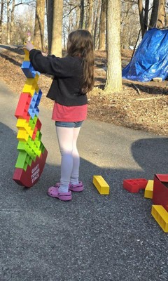 [This review was collected as part of a promotion.] We've all enjoyed playing the Giant Tower Stack game! Directions are simple and easy to follow. Product is packaged well, and is easily stored in a provided mesh bag. This will be so much fun to bring along camping or to outdoor gatherings, and is sized just right that even the littles or handicapped can participate! Blocks are not heavy, so there's no worry of injury when the tower falls! The only thing in would change is having the directions printed on some kind of a waterproof card, or on the bag so they're not lost.