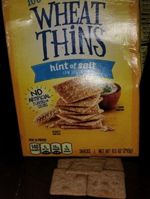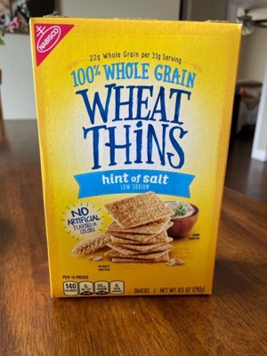 - One 8.5 oz box of Wheat Thins Hint of Salt Low Sodium Snacks, Whole Grain Wheat Crackers (packaging may vary)
