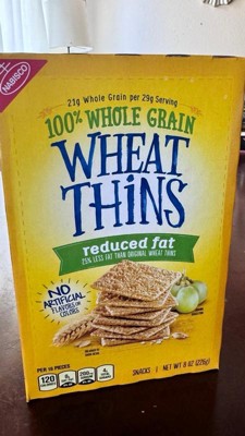 [This review was collected as part of a promotion.] Yummy as wheat thins but reduced in fat ! Great to pair with cheese such as Brie or gorgonzola. Package is resealable to keep freshness but they won’t last too long ! Too addictive!