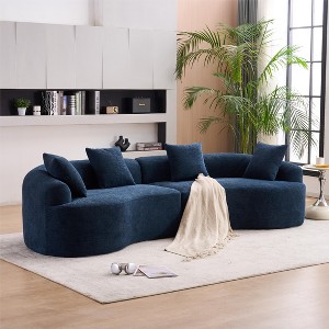 The Full Compression Sponge Sofa is a luxurious 110"L curved modular sectional designed for modern apartments. Upholstered in soft 30D high-density chenille fabric, this all-foam sofa features rounded curves for safety and comfort, making it ideal for families with children and pets. With an 800 lb weight capacity, it offers spacious seating without sharp corners. The sofa arrives fully assembled—simply unpack and fluff to restore its picture-perfect shape. Its modular design allows easy movement through tight spaces, perfect for renters or frequent movers. Combining elegant grey polyester upholstery with oversized proportions, this statement piece delivers both sophistication and practical functionality for contemporary living spaces.