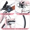 Designed specifically for young riders, this girls' bicycle masterfully blends comfort-focused geometry with practical commuting functionality. The carefully proportioned steel frame features a low-step design that enables effortless mounting and dismounting while maintaining optimal stability for developing cyclists. A reliable Shimano 7-speed drivetrain delivers smooth, intuitive gear transitions that adapt to various riding conditions from neighborhood paths to longer family rides. The premium brown leather saddle paired with ergonomic grips ensures comfortable positioning, while the quality tires provide balanced cushioning and reliable traction. A dual braking system combining front caliper and rear band brakes offers progressive stopping power suitable for young riders' handling capabilities. Arriving predominantly assembled, this bicycle requires minimal adult assistance for final setup, creating an ideal first multi-speed bicycle that builds confidence through comfortable ergonomics and predictable performance.