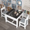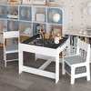 This charming children's table and chair set creates a dedicated activity center for young learners, perfectly sized for their comfort. The table's standout feature is its reversible top, offering two distinct play surfaces. One side is a smooth blackboard for unlimited drawing and writing with chalk, while the other is a sleek grey plain surface, ideal for building with blocks, assembling puzzles, or creating toy scenes. Practicality is enhanced by a clever hidden storage compartment revealed when the tabletop is lifted, providing a spacious area to stow art supplies, books, and toys. The two accompanying chairs add further organizational value, each equipped with a fabric-lined drawer underneath the seat for neat and accessible storage of smaller playthings. Crafted from high-quality MDF, the entire set is built for durability and safety with smooth, rounded edges. This thoughtful design encourages independent play and creativity while helping to maintain a tidy and clutter-free space in any playroom or bedroom.