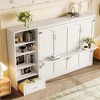 This innovative queen-size Murphy bed revolutionizes space utilization by seamlessly transforming from an elegant cabinet into a comfortable sleeping solution. The versatile design features adjustable storage compartments that can be positioned on either side to accommodate different room layouts, while height-adjustable shelves offer customizable organization space. Four spacious compartments and a large bottom drawer provide ample storage for bedding and personal items, maintaining a clutter-free environment. Crafted from quality wood materials with robust engineering, this wall bed supports substantial weight capacity while maintaining sophisticated aesthetics. The effortless transition between daytime furniture and nighttime sleeping arrangement makes this piece ideal for studios, guest rooms, or multi-purpose spaces where maximizing floor area is essential.