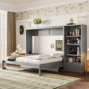 Whisen Queen Foldable Platform Bed & Murphy Bed with Height Adjustable Storage Compartments - Gray