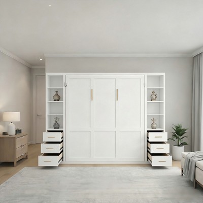 Whisen Queen Murphy Bed, Ample Storage with Push-Pull Cabinets & Sleek Design - Espresso