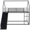 This twin over twin metal house bunk bed combines style, safety, and fun in a space-saving design. The playhouse-inspired frame sparks creativity during playtime, while the built-in slide and ladder, which can be positioned on either side, offer functional versatility. Crafted from durable metal with a sleek silhouette, it ensures long-lasting stability and elegance for any bedroom.