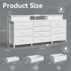Add a touch of coastal farmhouse style to your bedroom with this 55"W Dresser White Chest Storage Cabinet. This dresser features a sleek white metal handle and a crisp white finish that exudes quality and style. Made from sturdy solid and engineered wood, The 12 drawers, divided into three different sizes, provide ample storage space for clothing., extra bedding, and other personal items. The metal glides ensure smooth operation, while the included tipover restraint device provides added safety. With its lacquer finish, this dresser is the perfect addition to any modern bedroom.