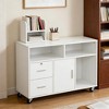 White Printer Stand Unit with Locking Storage Cabinet, Rolling Office Storage Organizer