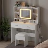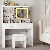 - Enhance your beauty routine with the makeup vanity desk equipped with adjustable LED lights in 3 light modes. Touch the switch to change the color mode, or long press the switch to adjust the brightness. Create the perfect lighting ambiance to enjoy makeup every day.