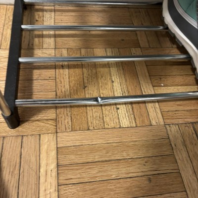I purchased this to replace my fabric surface shoe rack. It does withstand weight more evenly. But the material is not strong enough. My dog stepped on it and left a dent. Glad this is not expensive and can last a while.