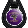 - QUALITY MATERIAL: Our durable round keychain is crafted from leather with a glossy resin-topped emblem featured design shown on one side. Approximately 1.5" (3.8cm) x 2.5" (6.4cm) in overall size, emblem is 1" (2.5cm)..