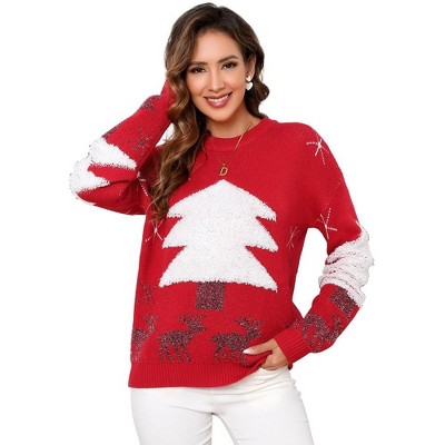 - Features: This ugly christmas sweater features Long Sleeve, crew neck, Christmas tree print, which is a loose fit casual pullover sweater. Can be given as a gift to your family and friends!
