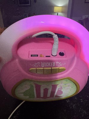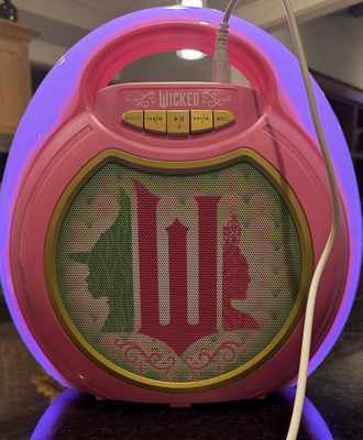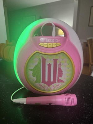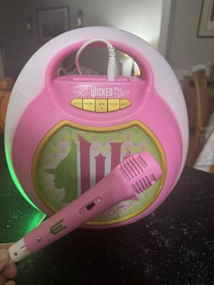 Absolutely loving this MP3 karaoke machine from “Wicked” movie! Extremely simple to set up and connect to Bluetooth very easily. You can play the karaoke songs from the actual musical and sing along with them! i’m extremely impressed by the quality of the sound. The colors are super vibrant and the light show is awesome! Great sound quality with a microphone, too! This is a great device for grown-ups and kids alike. Charged rather quickly and held the charge throughout the night. High-quality and super fun!