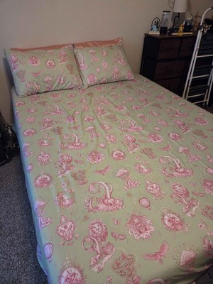 Step into a storybook with this enchanting Wicked: For Good twin-size sheet set that turns bedtime into a magical adventure. Featuring an intricate toile-inspired Katie Kime design in soft pink on sage green, this sheet set showcases a fantastical world of Oz. With characters and iconography that tells the story of Elphaba & Glinda.