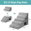 Wide dog stairs make it easier for pets to reach high beds, sofas, or cars. With 5 steps and 19.7" extra width, they offer added stability for small to medium pets. The 30D high-density foam eases joint stress, ideal for older or recovering pets. A built-in tunnel adds play value, while the removable waterproof cover is easy to clean. No assembly needed¡ªjust unpack and let it expand to full shape.