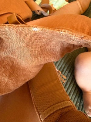 [This review was collected as part of a promotion.] Unfortunately, there are rips in the fabric throughout the whole carrier already.. my son was born in December and has used this less than 4 months. I'm pretty disappointed. The rust color also shows stains very easily.