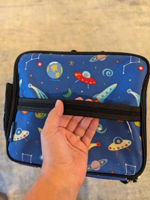 [This review was collected as part of a promotion.] I was worried this would be too small for my sons lunch but I was so wrong. The size is perfect with so much extra room a grownup could easily use it. The handle on the top is a added bonus for transporting lunch and it easily fits in my sons backpack so his hands are free on the way to school. The galaxy pattern is Out of This World and my son was an instant fan.