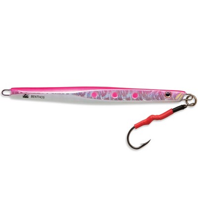 The diamond shape propels the jig in a high-speed vertical drop to where the fish are, even in the heaviest drifts. Super Fluoro Lumo paint will get the predators’ attention and bring them in for a strike. Comes rigged with split and solid rings that give the lure an enticing action.