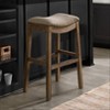 Add a touch of style to your home with this classic bar height stool. The legs are made from rubberwood for extra durability. The backless saddle seat is lined with nail head trim, while cushioned padding provides extra support when you need it most. Stretcher bars between the legs provide stability and comfort, and a metal kick plate protects the footrest from wear. This piece of furniture will put the finishing touch on your bar, kitchen island or tall bistro table.
