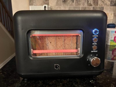 [This review was collected as part of a promotion.] This is such a beautiful toaster with very sleek design that I love! I also live that it has a side window which lets you see inside. It works fast and has few options like for bagels, or if you just want to defrost something. Such a great product!