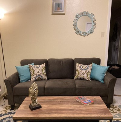 This couch offers a budget-friendly option for guests seeking basic seating solutions, particularly in small spaces like college apartments. While it is easy to assemble and has a stylish appearance, some guests noted issues with comfort and durability. The couch is lightweight and can be moved easily, making it suitable for those who relocate frequently. However, potential buyers should be aware of mixed reviews regarding its long-term comfort and quality.